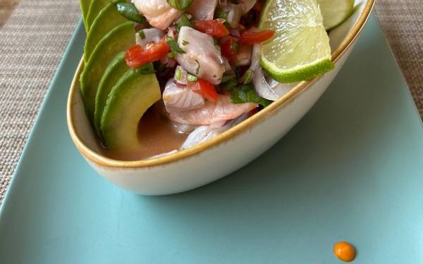 - Llom de llobarro i ceviche de gambes amb llet de tigre.