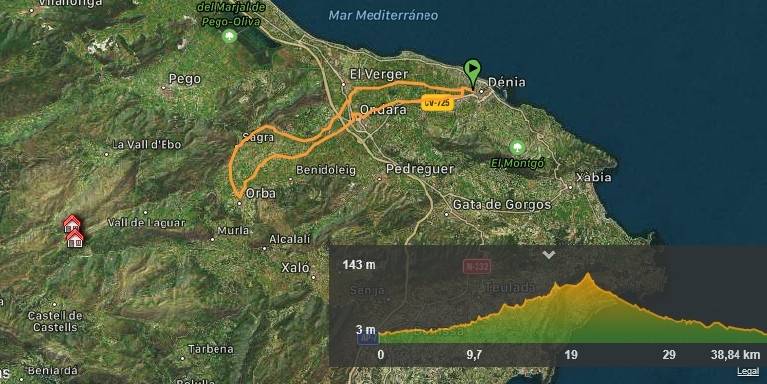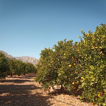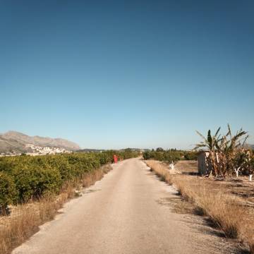 Después de cruzar Benimeli, Rafol, Sagra y Tormos (CV-729) y justo antes de Orba, giraremos a la izquierda y empezaremos a circular por carreteras secundarias y por caminos asfaltados que discurren entre los campos de naranjos típicos de esta zona.