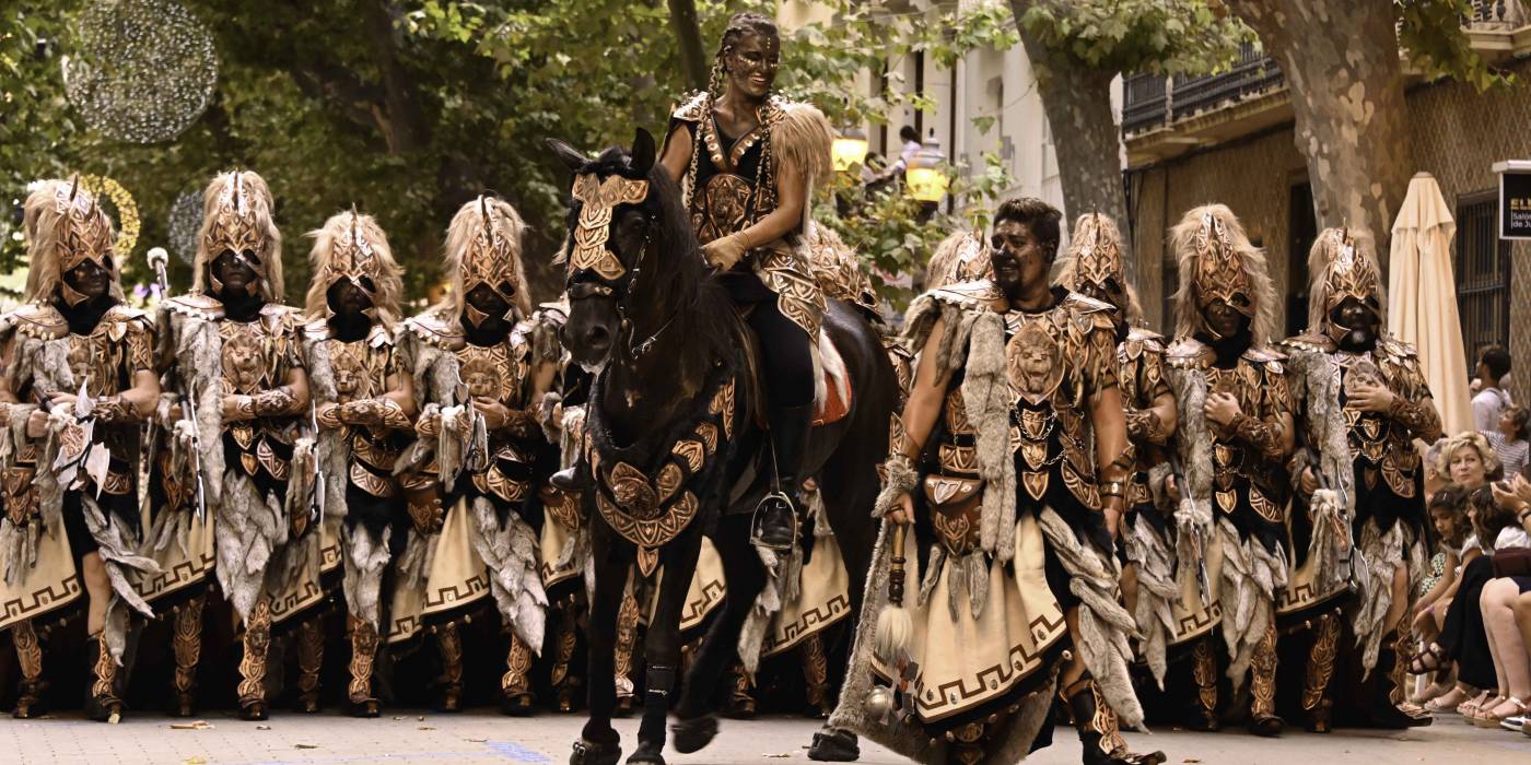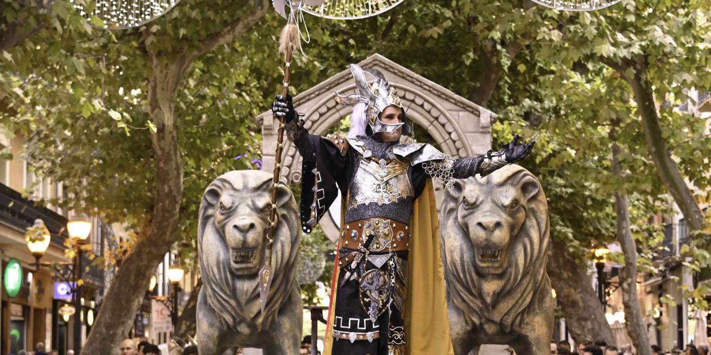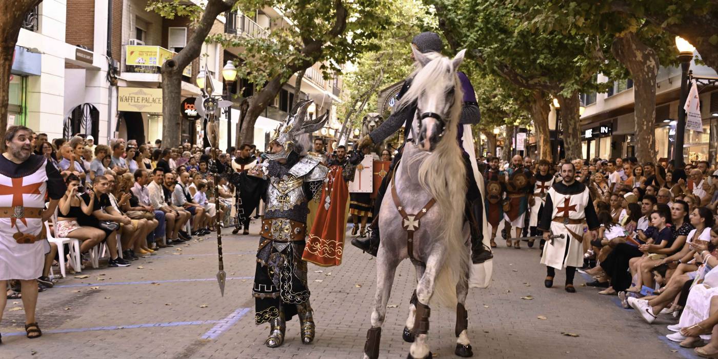 Ese impresionante desfile, que se desarrolla en la calle Marqués de Campo, da comienzo con la entrada de la Capitanía Cristiana, escoltada por sus huestes de guerreros cristianos. A continuación, la facción mora se presenta con una exhibición igualmente ostentosa. Dentro de la procesión, la Capitanía que ostenta el título de ese año puede decidir si encabezar el desfile o si cierra el paso, tanto para el bando cristiano como el moro. Luego, es el turno de la filà que asumirá la Capitanía en el próximo año.