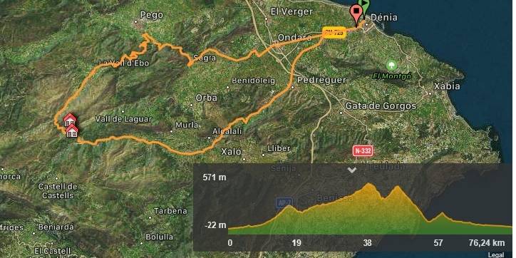 El regreso a Dénia se hace también en esta ocasión por el puerto "Els Pilarets" (CV-715) Ruta 1.