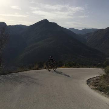 Una vez coronado nuestro último desafío queda una larga bajada por el precioso valle de La Vall de Laguar (cuidado con el primer tramo del descenso hasta el primer pueblo, Benimaurell, ya que hay mucha pendiente y el asfalto no es bueno).