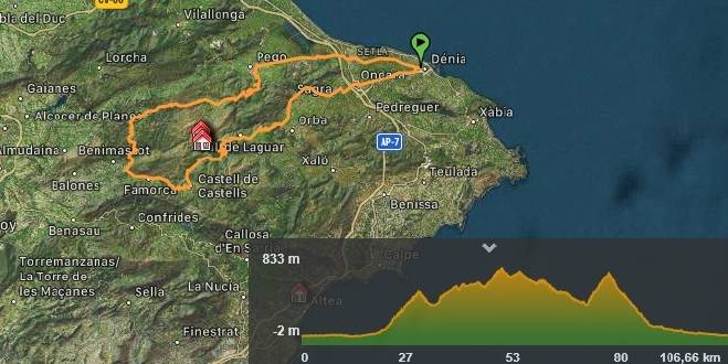 Una vez abajo se regresa a Dénia pasando por Sagra, Beniarbeig y Ondara.