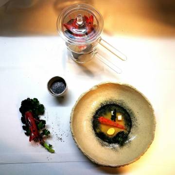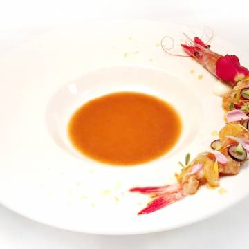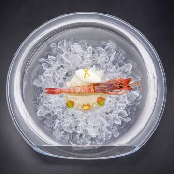 - 1r PREMI: Bruno Ruiz, Restaurant Aticcook Bruno Ruiz, Dénia. Recepta: "Gamba Sota 0°. Gamba Roja de Dénia amb pols gelada de tomaca garum i sopa freda de poma i api"